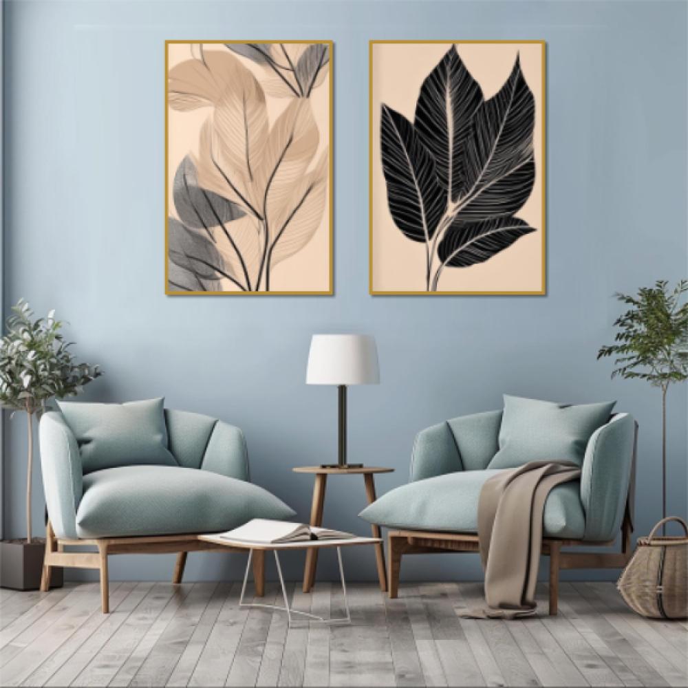 لوحة جدارية راقية مكونة من قطعتين، تضفي لمسة فنية وأنيقة على المساحة وتناسب مختلف أنماط الديكور الداخلي.