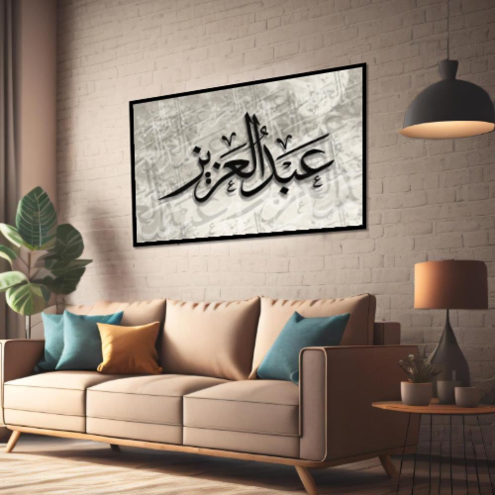 لوحة جدارية مصممة خصيصًا لك، تحمل الاسم أو العبارة التي تختارها، لتضفي طابعًا شخصيًا ومميزًا على ديكور منزلك أو مكتبك.